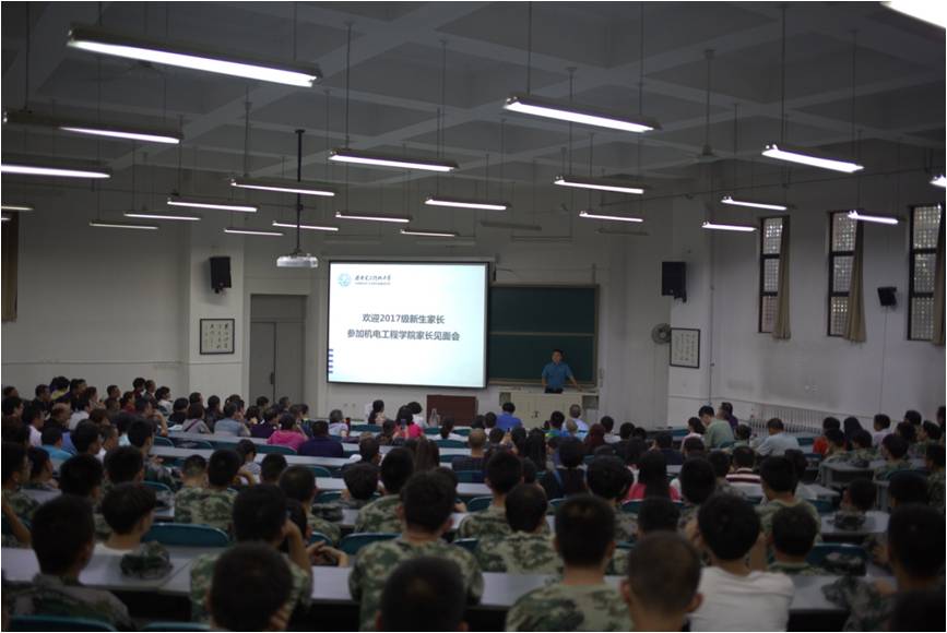 欢迎所有加入机电大家庭的新同学。今天机电是你们的归属,明天你们是机电的光荣!