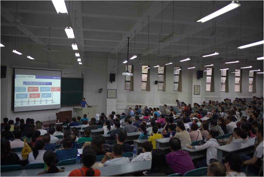 院党委书记林松涛老师向新生与家长介绍学院情况