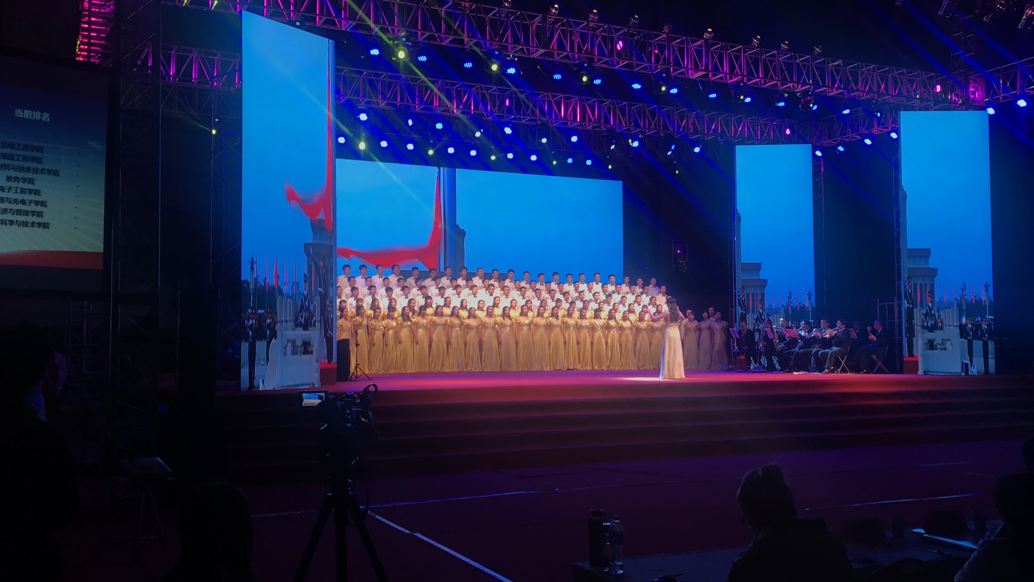 皇冠正规娱乐平台合唱队伍演唱的曲目是《与共和国同行》和《光荣与梦想》,经过一个月的训练,在同学们与带队老师王飞和老师王维佳、石贵利、张育洋的共同努力下,学院合唱队伍精彩的完成了这两首歌曲,气势恢宏、歌声嘹亮、舞蹈动作整齐划一,赢得在场观众的阵阵掌声。