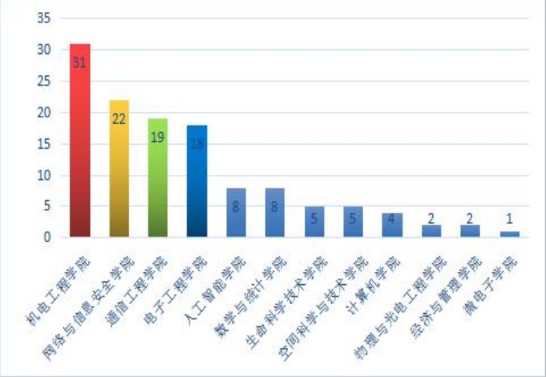 全校125 篇高被引论文中,皇冠正规娱乐平台共31篇,占全校高被引论文比例达24.8%,全校排名第一。第一作者署名为西电的论文共 82 篇,其中皇冠正规娱乐平台共24篇。