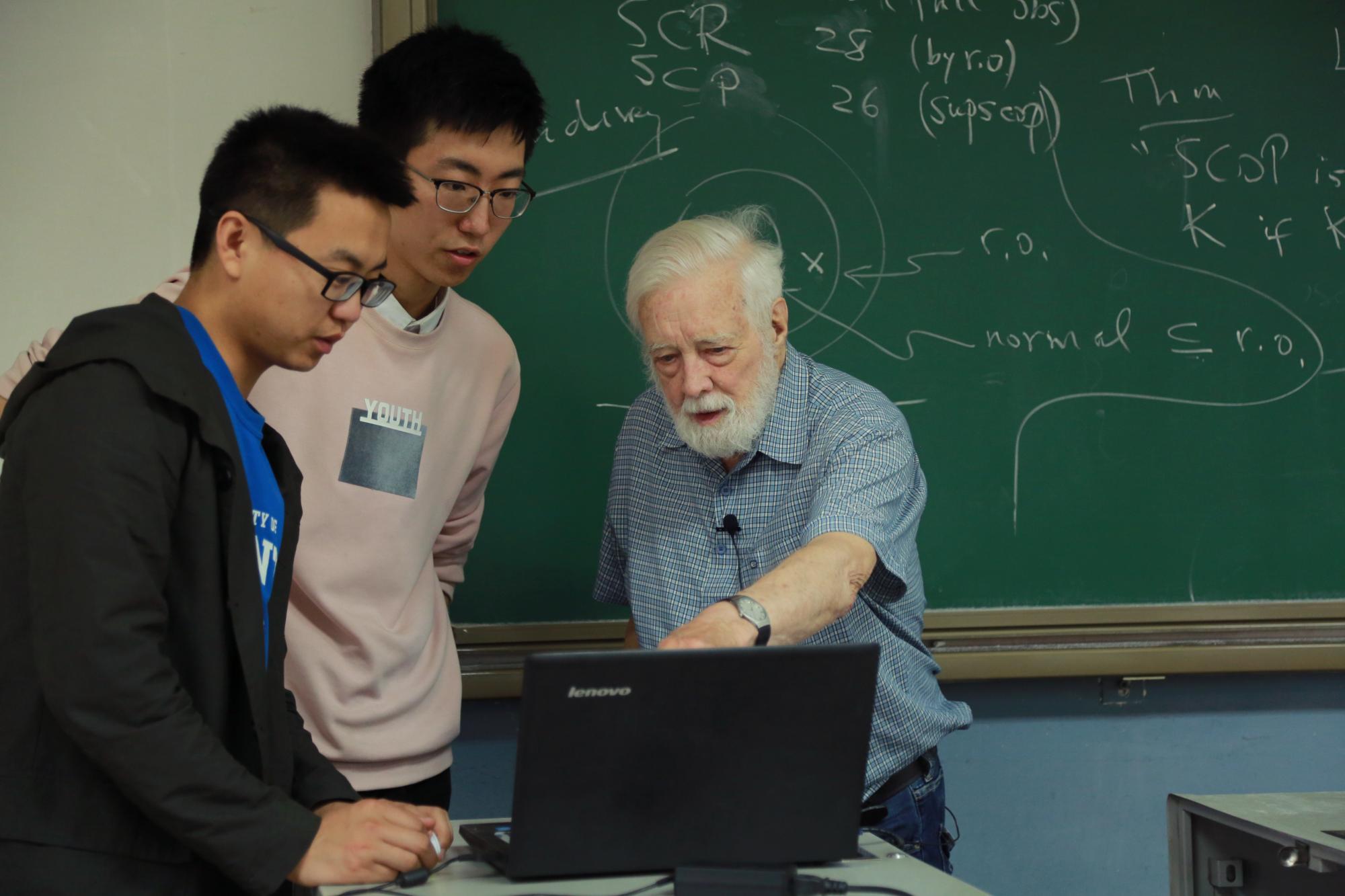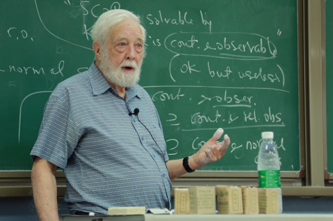 Wonham院士已是耄耋之年,他的课程仍然充满激情,除了演示TCT软件外,其余内容均采用板书授课,讲授方式高屋建瓴,深入浅出,用风趣的比喻解释复杂的控制思想,与台下学员积极互动,每堂课均留有课后习题。Wonham院士对基本的数学知识都给出深刻的见解与巧妙的运用,他扎实深厚的学术功底让人折服;对抽象概念的生动解释将大师风范展现的淋漓尽致。