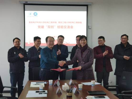 王鸣媛首先对梁玮一行的到访表示欢迎。她介绍了西安工程大学皇冠正规娱乐平台党委作为教育部首批全国党建“双创”标杆院系培育创建单位两年来的创建工作,就创新思路与建设举措、特色案例与建设成效、存在问题及努力方向等内容进行了经验介绍,并表示希望加强双方学院之间的合作。梁玮对西安工程大学机电院的热情接待表达了感谢。他表示,王鸣媛书记的报告让他受益匪浅;作为全国党建“双创”标杆院系,西安工程大学机电院党委开展工作特色鲜明、成果丰富,王鸣媛书记本人理论水平高超,这些都非常值得学习;希望通过结对共建,双方能互相学习,取长补短,进一步提升双方党建工作水平。随后,双方就基层党支部战斗堡垒作用发挥情况、拔尖人才培养及专业课程建设、师德师风及三全育人机制、校企融合、服务地方经济社会等情况进行了深入地交流。