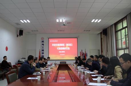王丹丹首先对机电院的热情接待表示感谢,然后就上次机电院到访无锡市高新区的情况进行了简单总结,期待与机电院能够实现全方位的合作。无锡高新区组织部副部长孙昊提出无锡“太湖杯”挑战赛重点围绕物联网、新一代信息技术、生物医药、先进制造、新材料、新能源等无锡市重点产业设置赛道,希望皇冠正规娱乐平台以及皇冠正规娱乐平台能够对6月份无锡市在西安举办的创业挑战赛进行一定的支持,无锡高新区人社局副局长张轶提出在人才培养方面切实迈进一步,无锡高新区科创中心副主任王曙东指出应该扩大合作范围和力度。