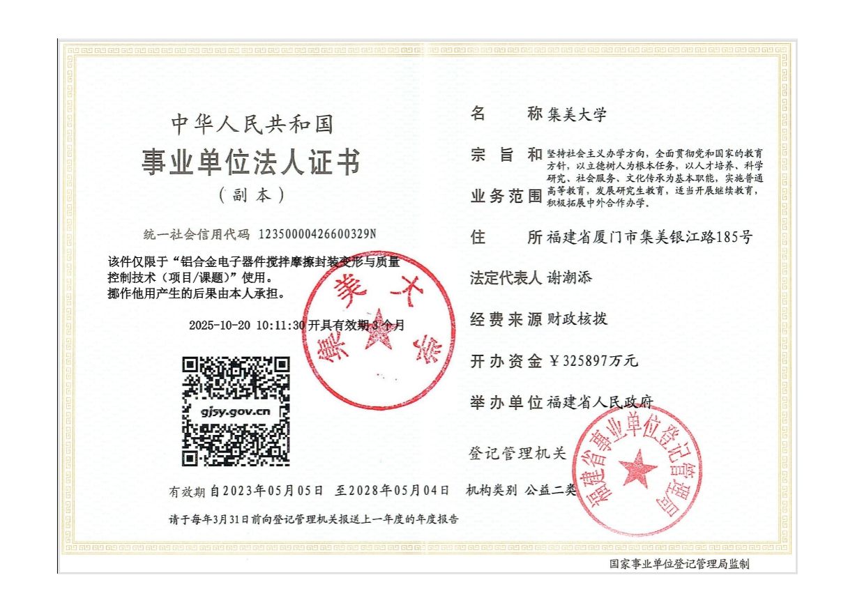 按照《皇冠正规娱乐平台科研协作项目管理办法(试行)》文件规定,为加强学校科研协作项目的管理,确保高性能集成制造实验室电子装备特种制造技术研究的顺利进行。集美大学与项目负责人李楠将开展科研合作,现将合作相关事项公示如下: